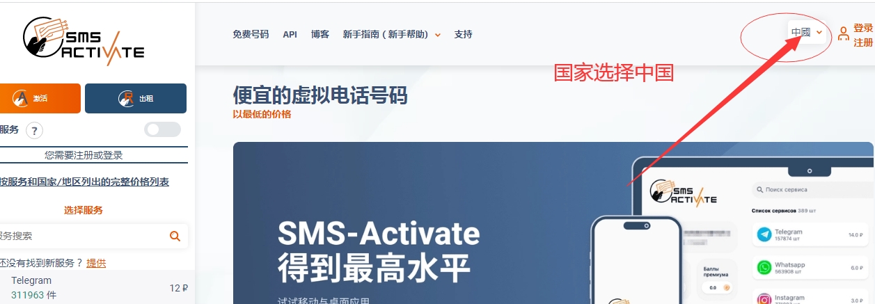 - 1,进入https://sms-activate.org官网,国内经常打不开,自己想办法。